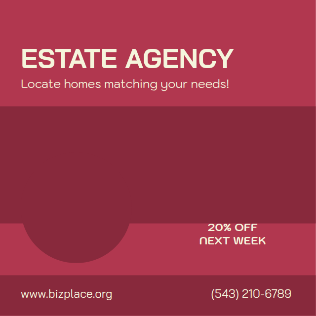 Estate agency Locate homes matching your needs! 20% off next week (543) 210-6789 www.bizplace.org